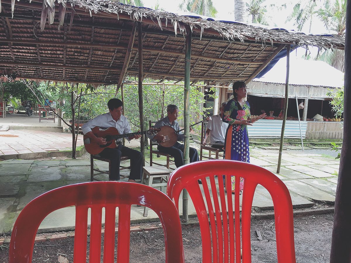 メコン川に到着してからは、メコン川クルーズ以外にも民族楽器の演奏やハチミツやキャラメル等の試食がありました。
