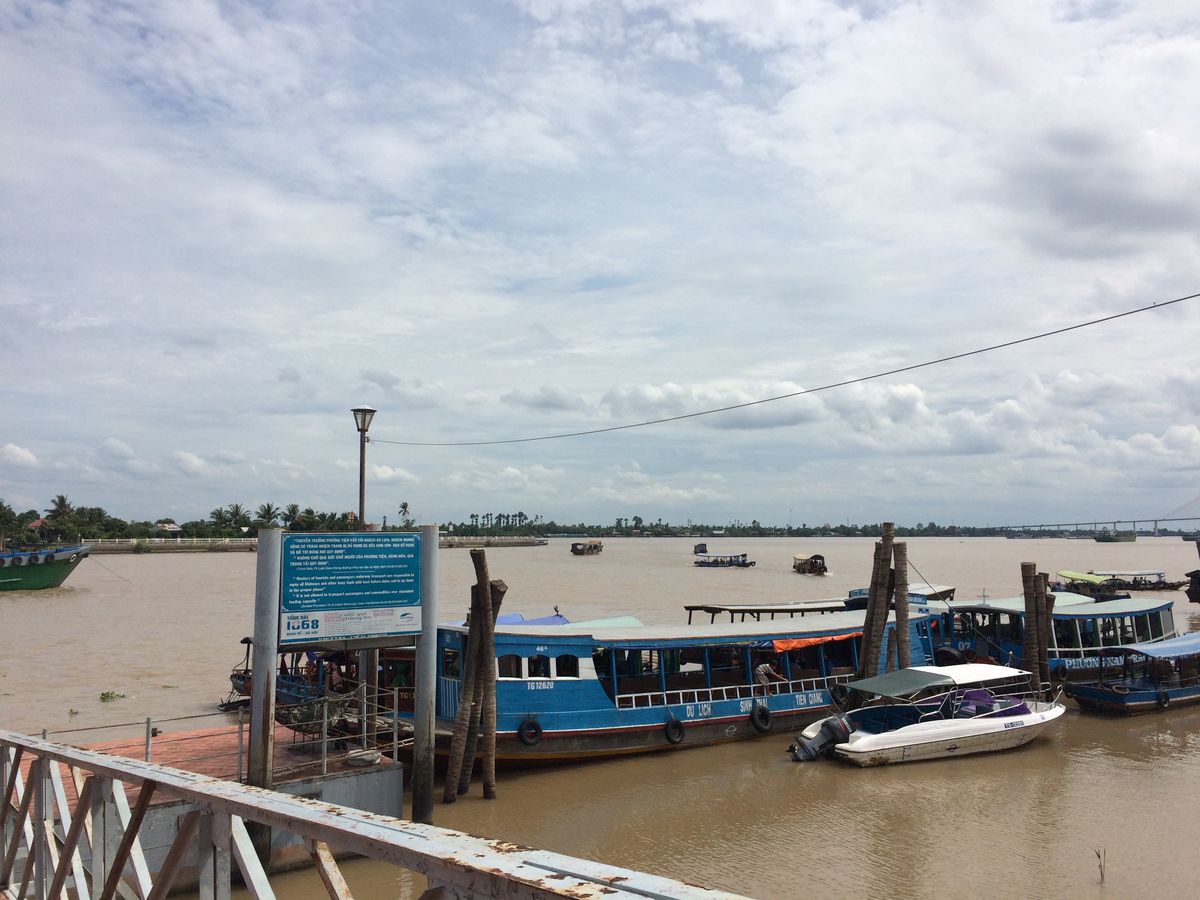 移動時間は長かったですが、ガイドのオンさんがホーチミンの歴史や人々の暮らしについてなど色々教えていただいたのであっという間に目的地、メコン川に着きました。