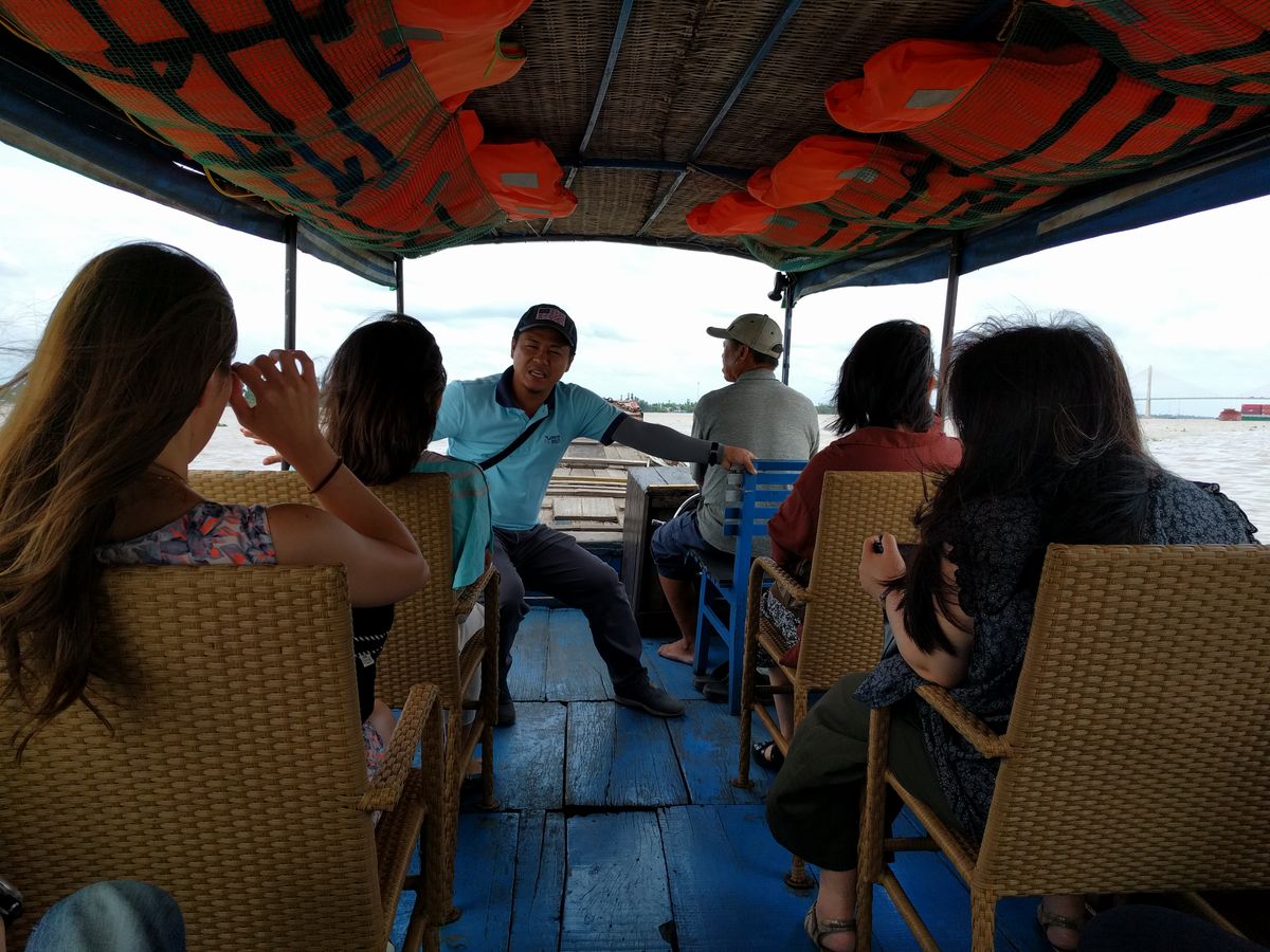 小学生の子供二人を含めた四人にて参加。朝の8:15ホテルピックアップで帰りは15時程。メコン川の茶色い壮大な景色を見れました。その他ハチミツ工場によったり、いわゆる観光を楽しめました。ガイドは日本語をしゃべれる若者で、安心感がありました。しいて言えばもう少しお値段安いといいなーと思いました。