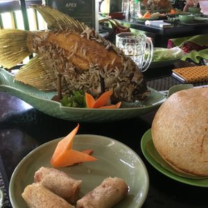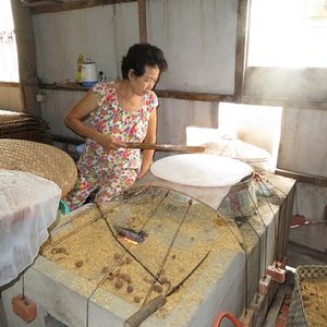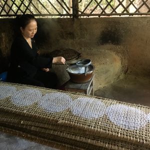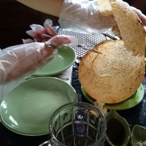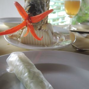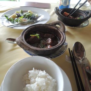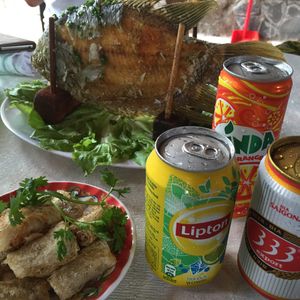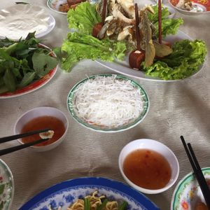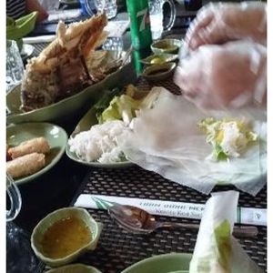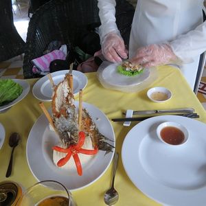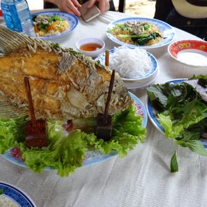 またバスで移動して、お昼はツアー参加者全員でレストランで象耳魚を取り分けてもらい、ライスペーパーで巻いて食べました。そのほかにもチャーハンのようなライスや鍋など、どれもおいしい食事でした。飲み物代は別にかかります。