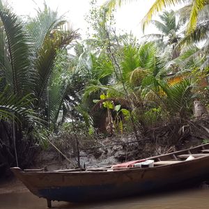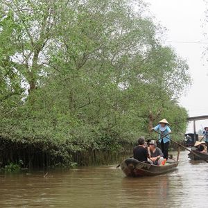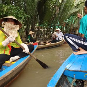 マングローブを進む手漕ぎボートでは、借りたベトナム笠をかぶり、ガイドさんと仲よく写真を撮ったり、すれ違うボートに手を振ったり大はしゃぎ。