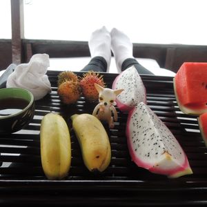 事あるごとに冷たいおしぼりが運ばれ、お茶やフルーツのサービスも行き届いていました。