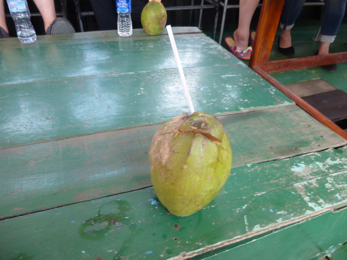 メコン川クルーズは、正直言って今ひとつです。ジャングルカヌーがメインかと思えば、これは、20分ほどで、しかも、イモ洗いのように、カヌーが連なって進み、こぎ手は、極めて事務的です。多くの時間は、蜂蜜お土産屋、ココナッツお土産屋、フルーツ楽団屋に費やされます。