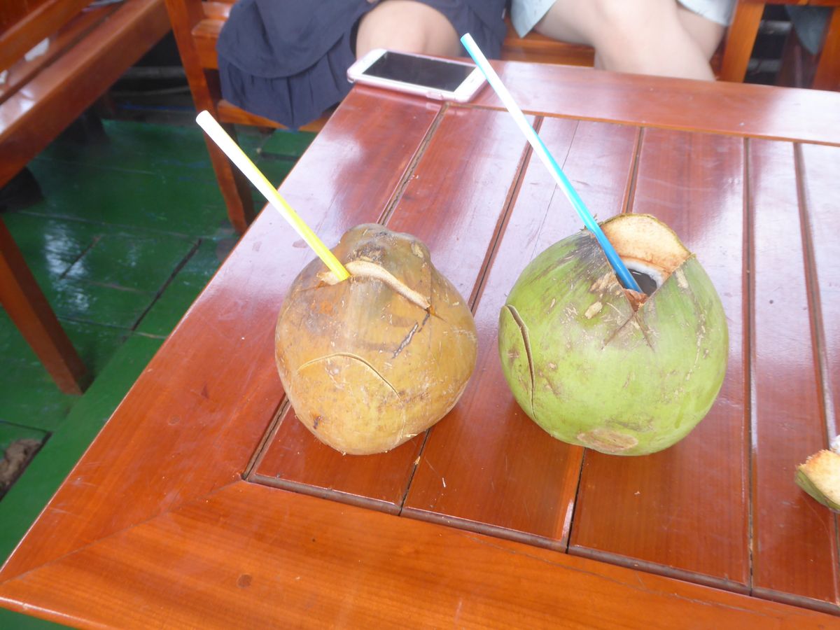 もの。しかし、昼食場所はきれいで、広く心の和みを感じた。料理もおいしく象耳魚も中々のものであった。これだけでも行く価値あり。ただ、帰りのボートでいただいたヤシジュースは飲んで後悔した。