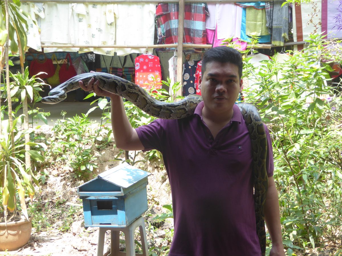 一番の思い出は蛇を首に巻き記念撮影をした事です。