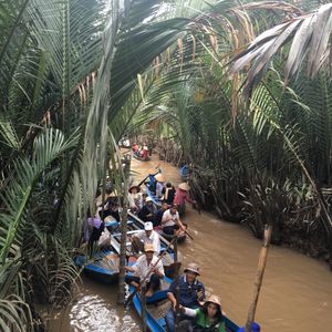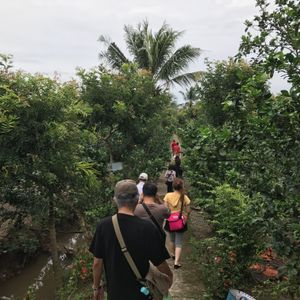 ホーチミンから友人2人で参加しました!全員で合わせて16人程の混乗グループで、メコン川に向かう約1時間30分ほどの車内でもガイドのナンさんがベトナムの人気スポットや美味しいお店、日本では考えられないようなベトナム人の生活など写真を交えながら楽しく教えてくれましたミトーに到着すると、メコン川を船で5分程度乗り、島に到着するとホーチミンとはまた一味違う風景が広がっていました!そこでは名物のフルーツを食べたりココナッツキャンディを作る様子を見学も出来、とても楽しかったです途中、大蛇を首に巻き写真を撮ったり、珍しいお酒や採れたてのハチミツを食べたりと日本ではなかなか出来ない貴重な体験が出来ましたそしていよいよメインのデルタクルーズ!1隻4人ずつ乗り、現地の方の手漕ぎで細い川を進みました。流れる風景が心地よく、特に途中の緑のトンネルは圧巻でした!果樹園の散策や日本では珍しいフルーツの試食、お土産物の買い物も出来、大変充実した時間でした。昼食のレストランでは象耳魚を始めとするベトナム料理を堪能しました。