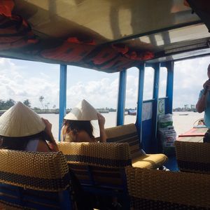 メコン川のクルーズでは女性の船頭さんのすぐそばに座ってしまったため。。