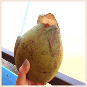 中州からの帰りのボートの中ではココナッツジュースが出てきました。
