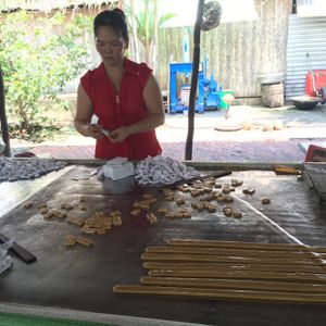 まず、手作りココナッツキャンディーの製造説明と販売、そして隣で蜂蜜茶の試飲・販売です。