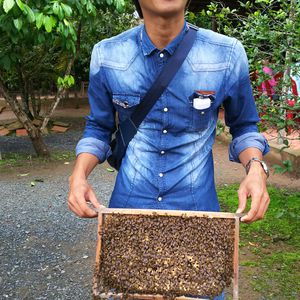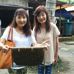 蜂蜜は実際に蜂の着いた箱(デモンストレーション用)を触られてもらえます。