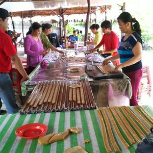 店員さんが生春巻きが巻いてくれて、それから丸い大きな焼き餅を切ってくれます。