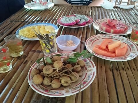 このほかに、大蛇との写真、ベトナム音楽の演奏を聴く、はちみつティーの試飲、くだもののサービスなど盛りだくさん。あっという間に時間が過ぎました。