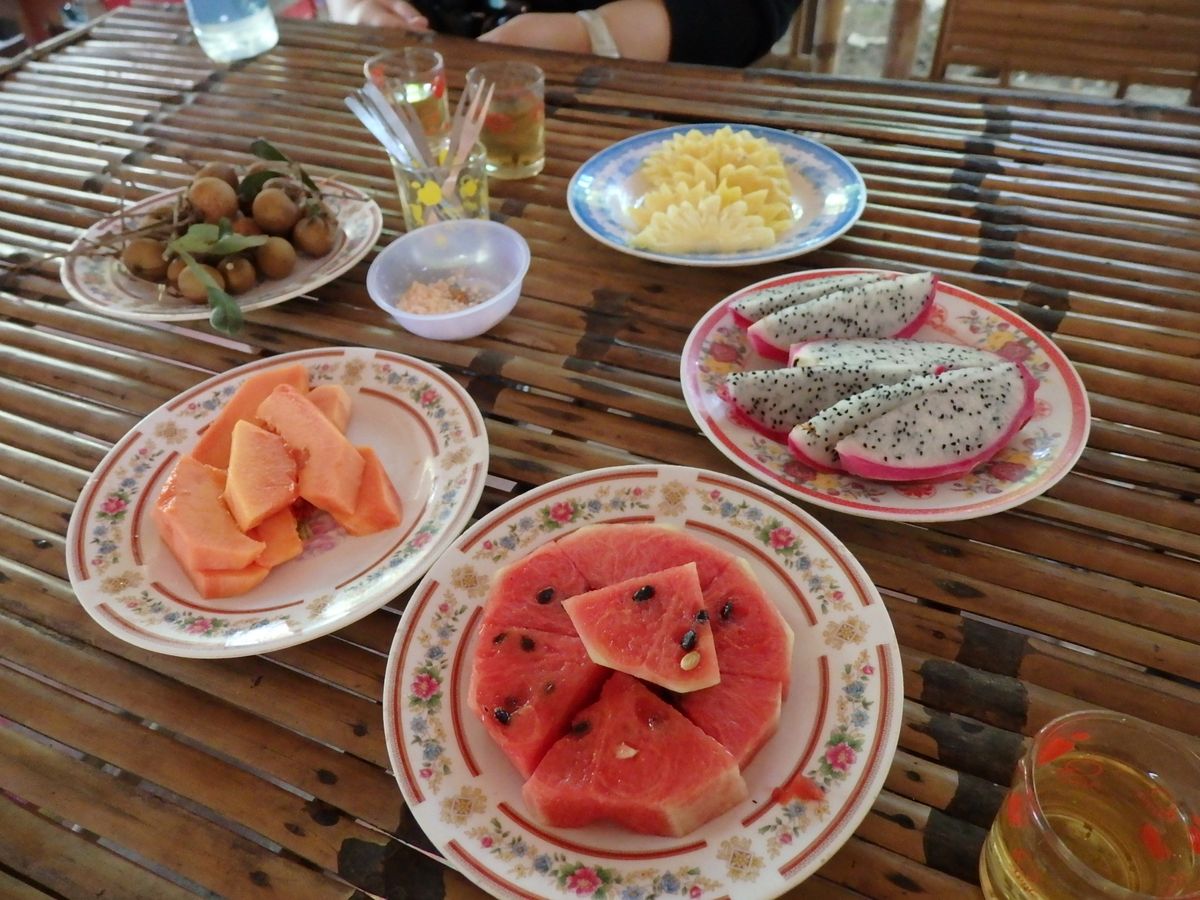 ・途中の「フルーツ試食」「民族音楽鑑賞」にはガッカリしました。ホテルや市内で美味しいフルーツをいっぱい食べることができるのに、市内を離れた自然の中でいつから切ってあったのか分からないようなフルーツを突き出され、またその辺のハンモックに寝そべってスマホをいじっていたアオザイ姿の女性があくびをしながら前に出てきて歌い出したときには、もうテンションがどん底まで下がってしまいました。チップはオプションという名の義務のようでした。。。
