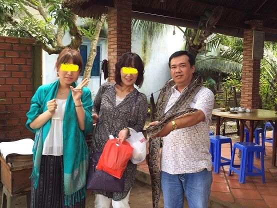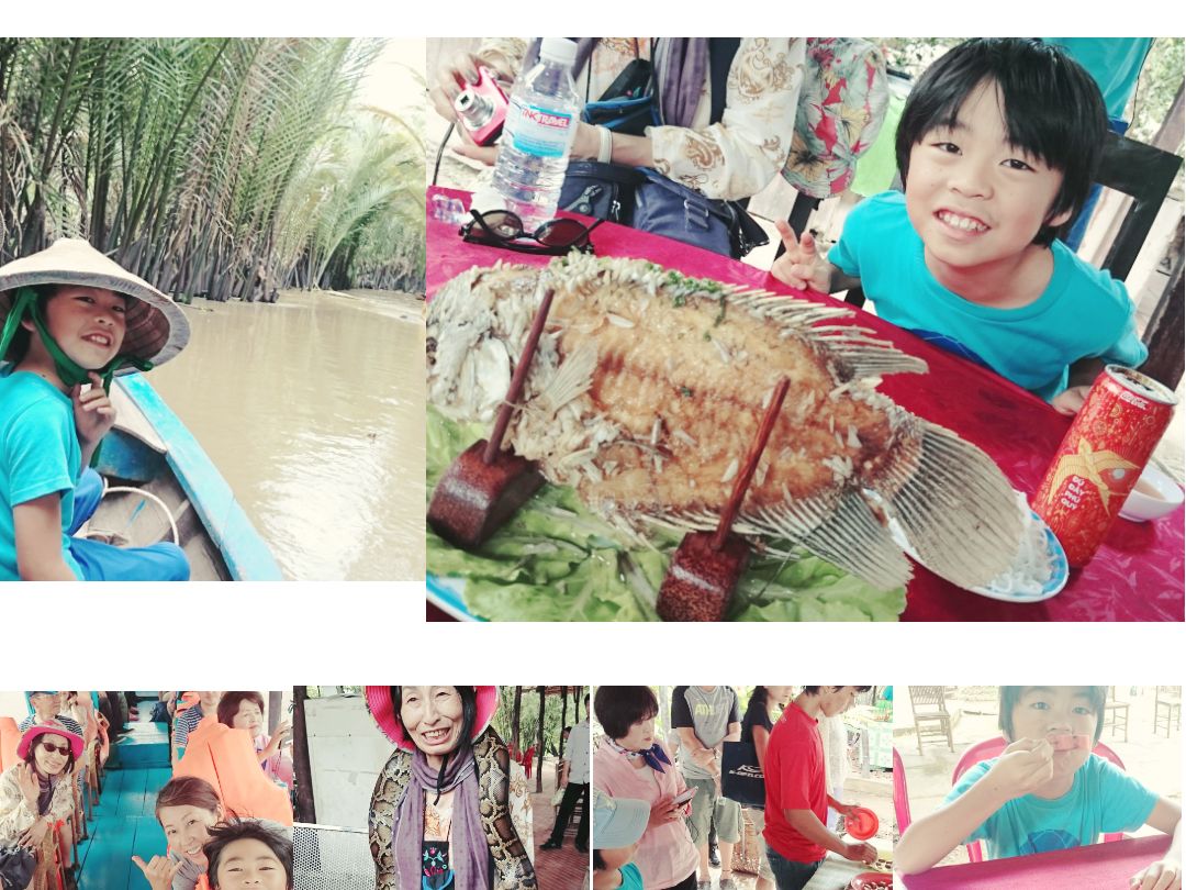 ベトナム ホーチミンは3度目。メコンデルタ観光に今回やっと参加することができました。ガイドの「ニャン」さんもとてもユニークで、日本語も堪能。バックバックから黄金のマイマイクを取り出し、ベトナム音楽を流しながら歌ってくださり、tとても盛り上がりました。一緒に同行した日本人のみなさんもとても気さくで、食事の時も楽しく会話させて頂きました。噂の「エレファントイヤーフィッシュ」(像耳魚)もとても美味しく、見た目のグロテスクな印象に反してあっさりとしたお味で大満足❗他のサラダや焼きそばも美味しかったです。へびを首から巻かせてもらったり、ココナッツキャンディー工場の見学をさせて頂いたり、なかなか経験できない事もさせていただいたので、記憶に残る一生忘れない良い旅行となりました。川下りはディズニーランドのリアルジャングルクルーズ!といった感じ。静かでとても気持ちよかったです。最後のお寺見学も楽しかったです。