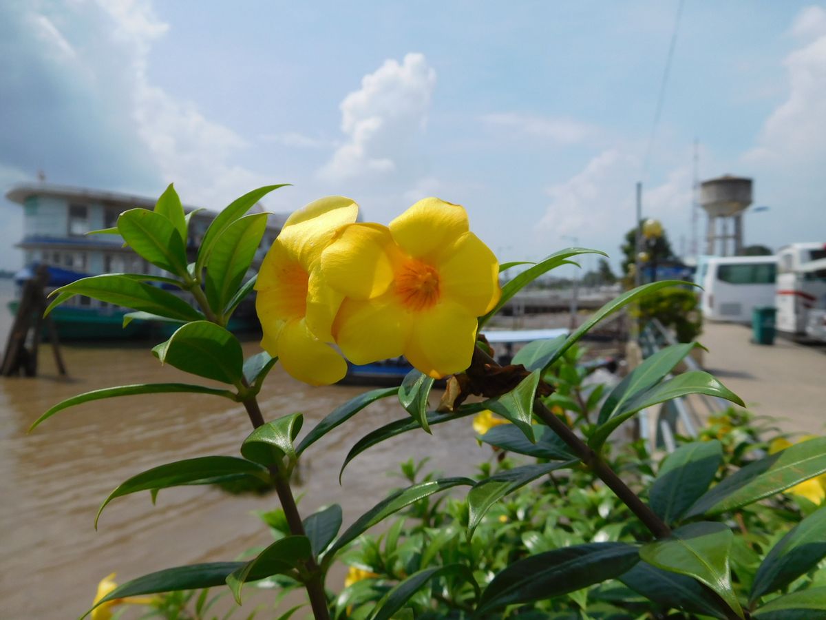 メコン川は泥色でおせじにも綺麗とはいいがたいですが、中国の黄河につながっておりきたなくはないそう。落ちたらワニでもいるんじゃ、と言うと今はいない、とガイドさん(笑)