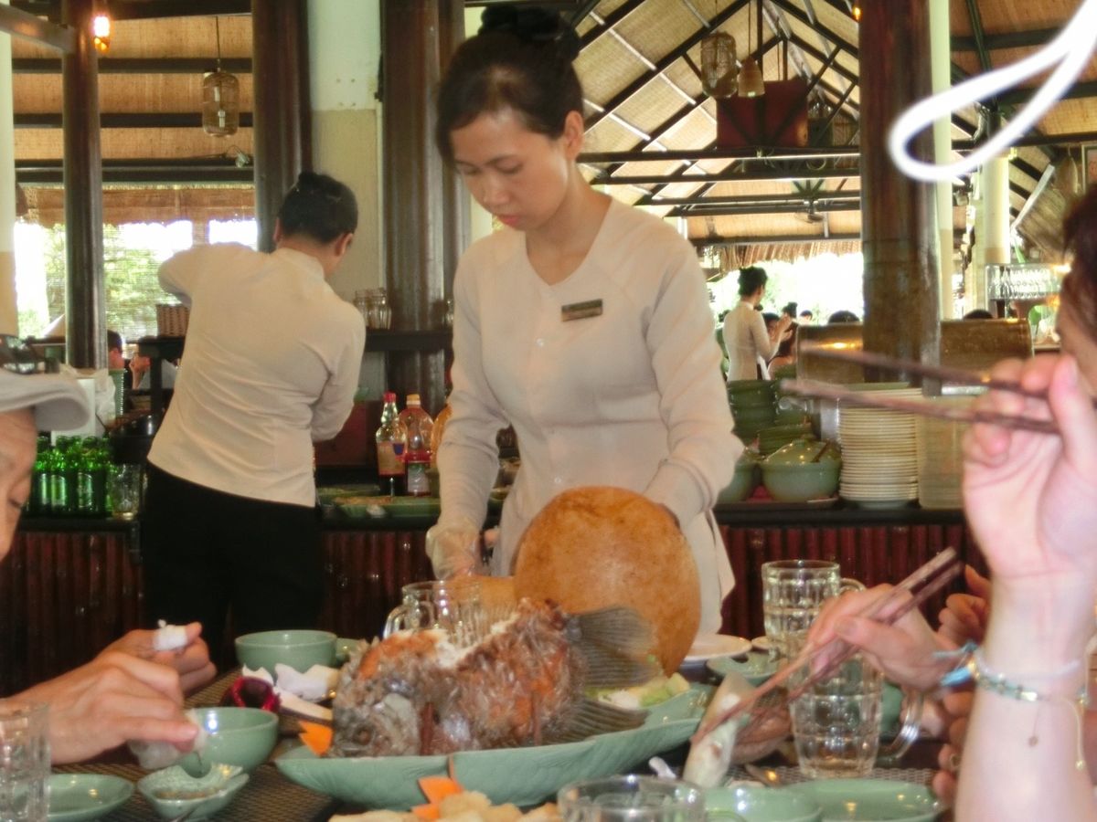 昼食のミトーの名物料理、象耳魚は普段、メコンデルタに住む人々の家庭料理となっています。