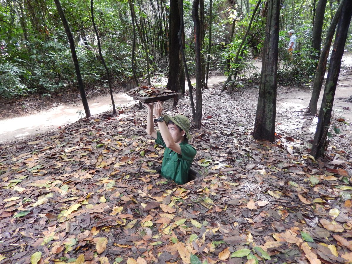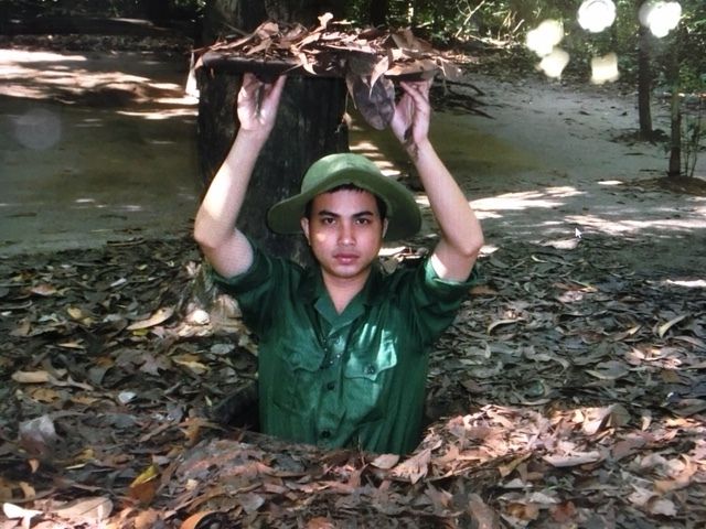ホーチミンからクチトンネルまで約2時間。ボコボコ道もありましたが、オートバイで大混雑するホーチミンとは異なる、水牛が放牧されている田んぼなど、のどかなベトナムの田舎の景色を楽しめました。途中親切な女性ガイドさんにベトナムの生活ぶりなど色々聞く事も出来ました。
