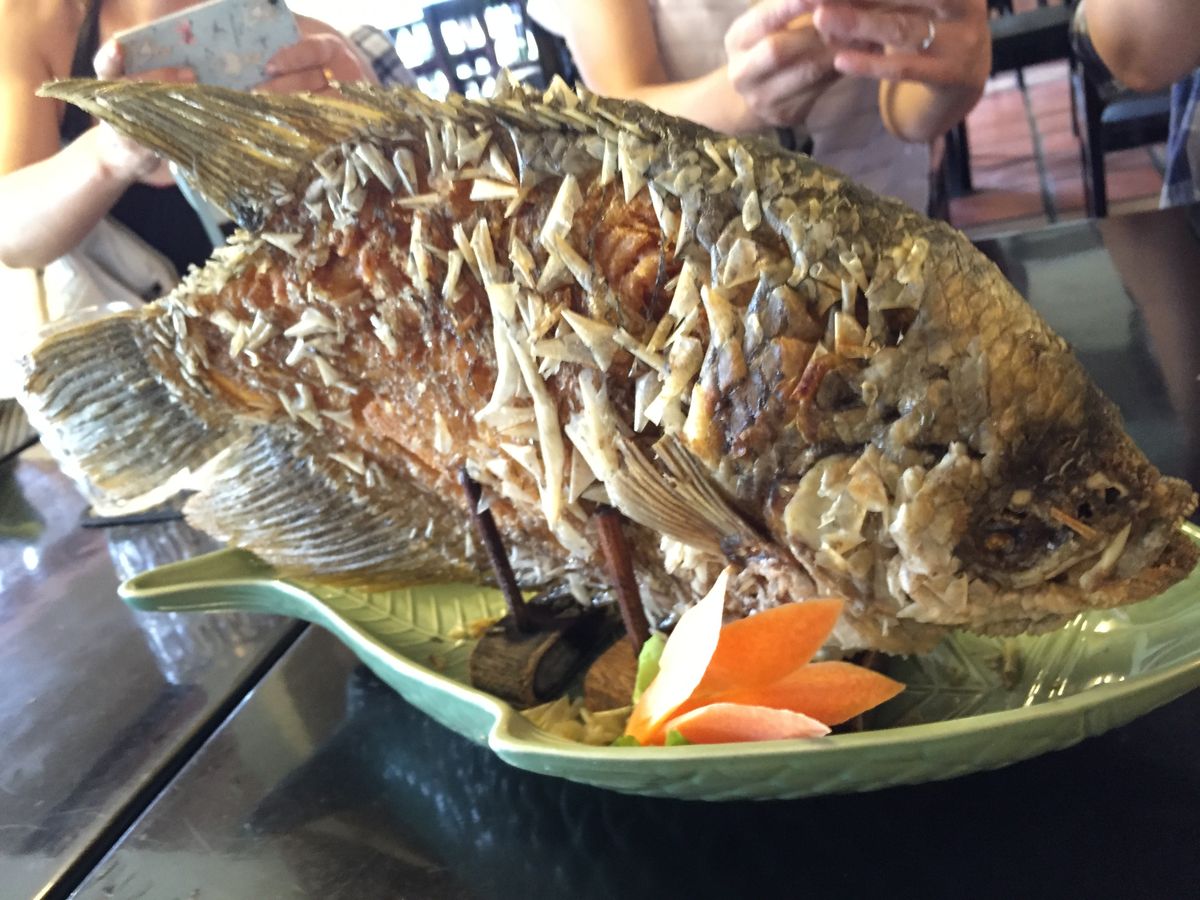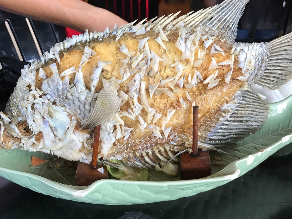 見た目によらず、淡白な味の魚でメコンデルタの人々に愛されています。