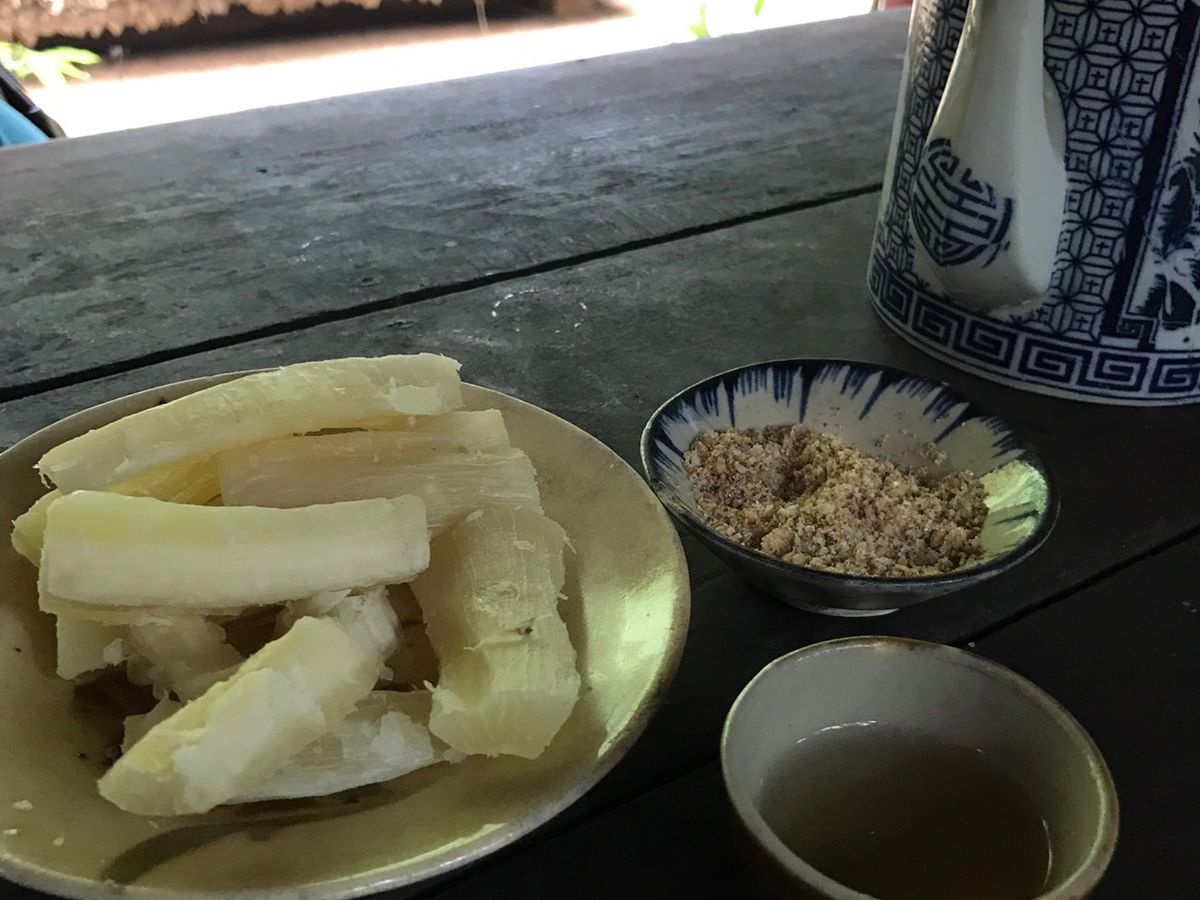 クチトンネルから昼食のレストランへの移動途中に、ガイドさんがバナナの天ぷらを買ってきてくださいました。