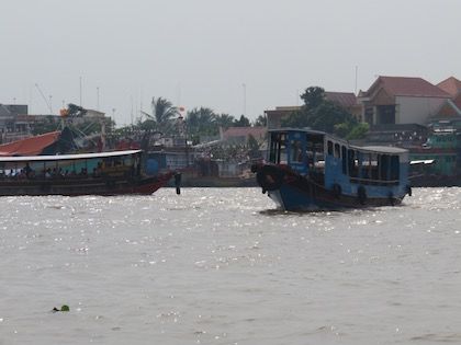 一番楽しみにしていた、手漕ぎ船に乗ってメコン川を楽しむ時間は10分?15分というくらい短かったです。橋を建設する工事のため半分しか乗れないということでした。