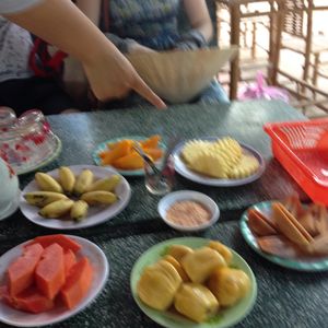 また、島の散策中には、竜眼、マンゴー等の島のフルーツが唐辛子塩とともにふるまわれます。これがまた美味でした。正直なところ、衛生面で少し心配もありましたが、私と両親は全く問題ありませんでした。