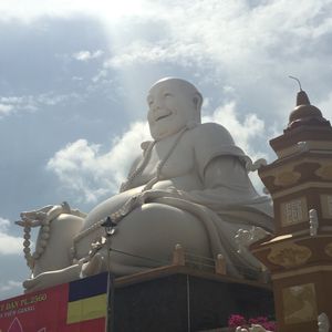 とてもカラフルなお寺です。仏像も大きく、建物が派手でテーマパークっぽい。中ではちゃんとお坊さんがお勤めしています。