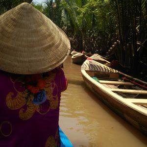 父の誕生日当日にメコン川ツアーに参加しました。船頭さんが曳く小舟に乗り込み、褐色の水とジャングルのような樹々に囲まれた細い川を静かに静かに進みました。初めて見る光景に感激しました。