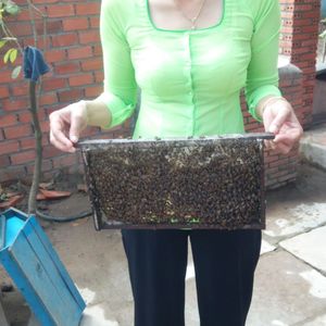 そこから10名程の舟でキリン島へ。島に着くと蜜蜂の巣を持ったお兄さんのお出迎えでパシャリ。