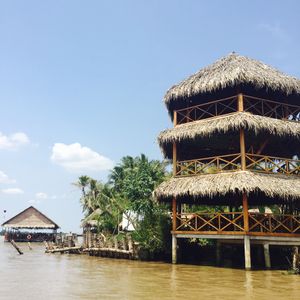 前方から来る舟、左右に茂る草木を上手に避けながら舟は進みます。左右には家やお店のようなものが見え、そこでの暮らしぶりを垣間見ることが出来ました。