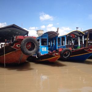 →メインイベントのメコン川クルーズですが、現地の方が4人乗りの小さなボートを