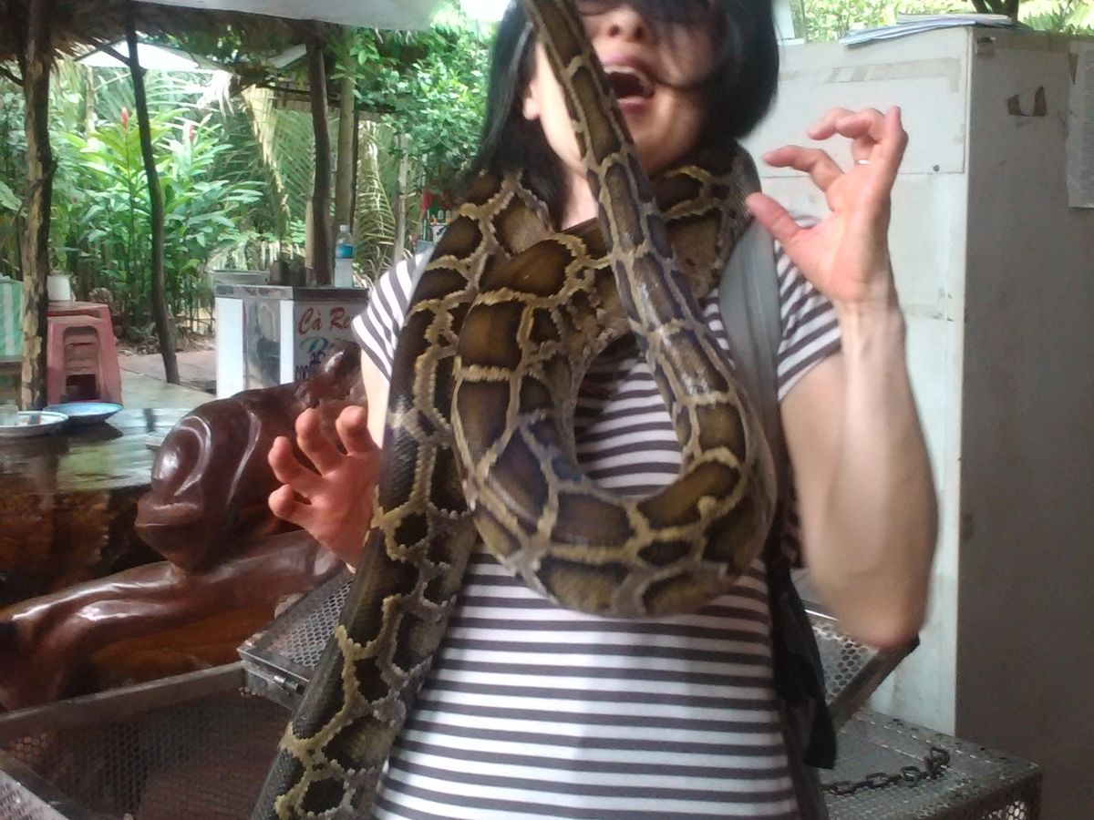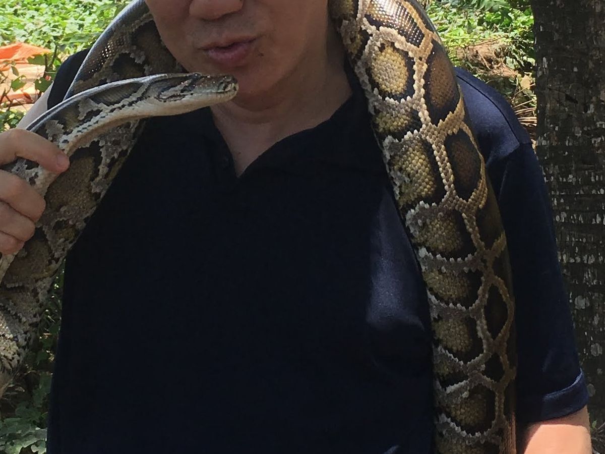 10キロ以上ある大きな蛇と記念写真。こんなに大きな蛇は初めてだったのですごくいい記念になりました!