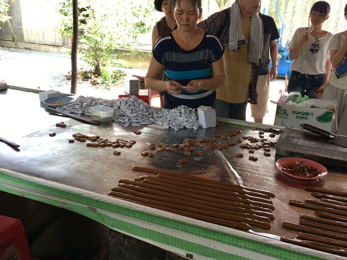 その後、ココナッツキャンディの工場を見学。搾りたてのココナッツの果汁が甘くて香りもよくて本当に美味しかったです!