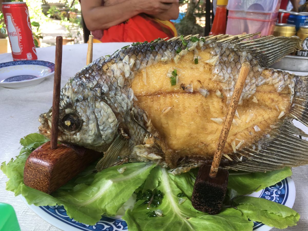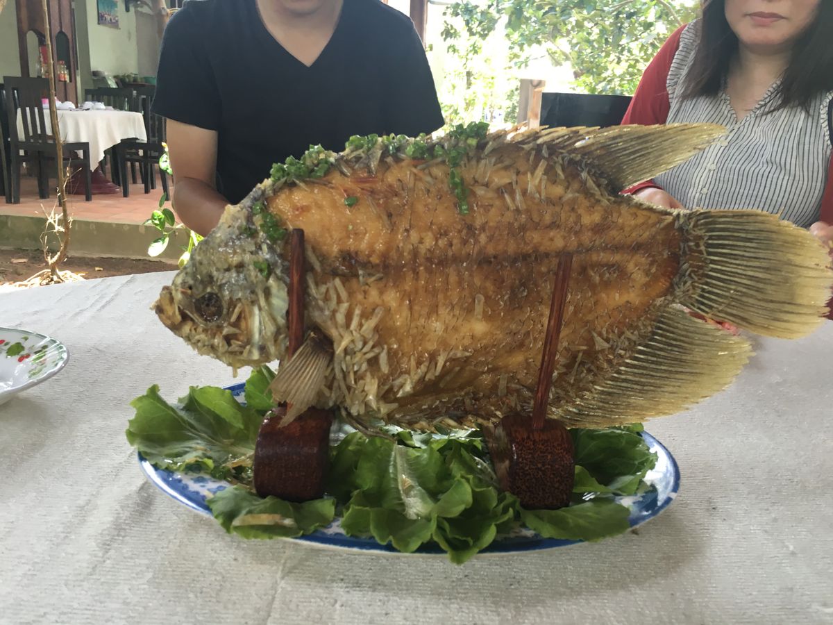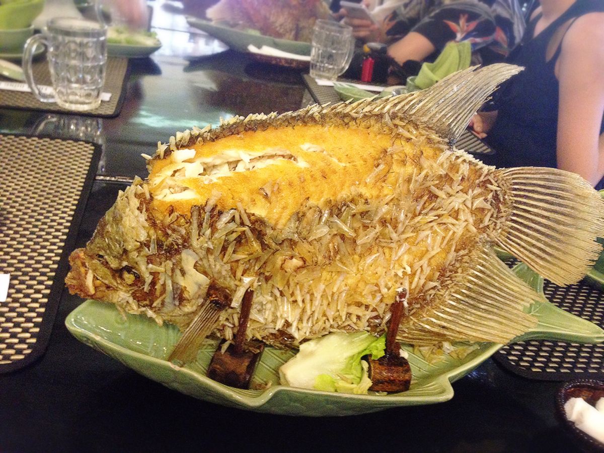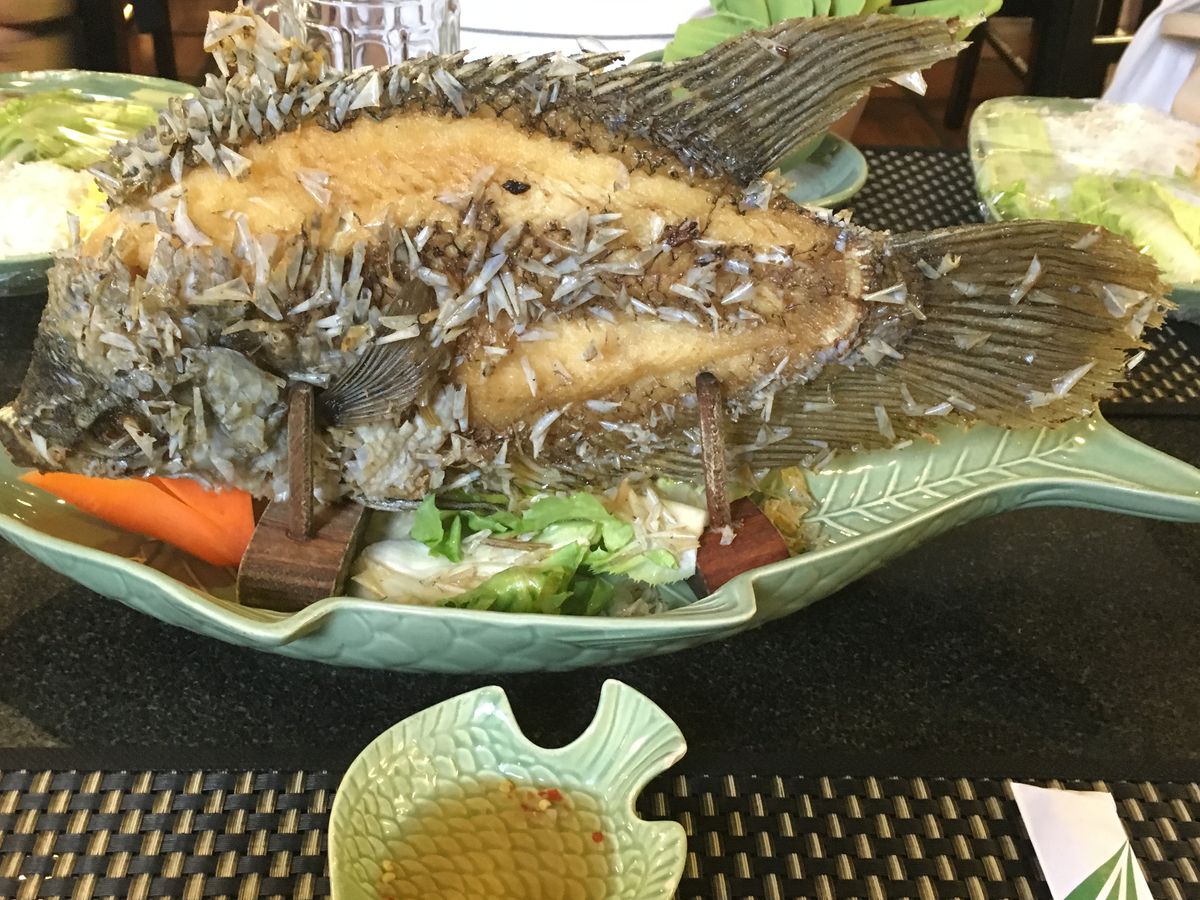 ランチはエレファントイヤーフィッシュ!見た目のインパクトがとにかくすごいです!でも味は淡白なので食べやすかったです。