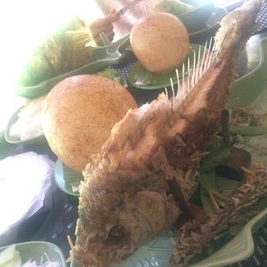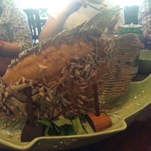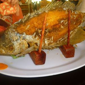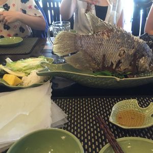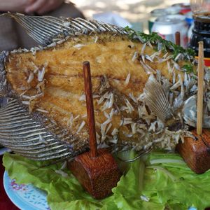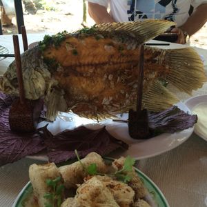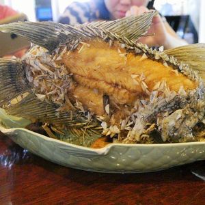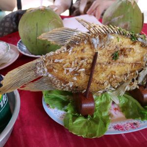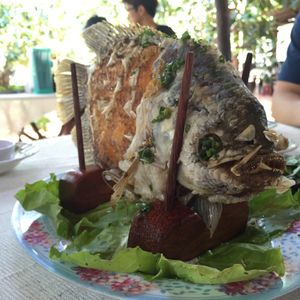 昼食の魚はメコンデルタのミトー特産の象耳魚(エレファントイヤーフィッシュ)という