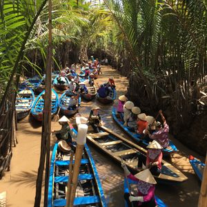 メコン川デルタクルーズ<メコン郷土料理名物「象耳魚」ランチ付/日本語ガイド> に参加しました。朝8時くらいにバスに乗り、メコン川まで約2時間です。途中、ベトナムコーヒーの美味しいハンモックカフェに立ち寄ったり、ハチミツ農園でハチミツやいろいろなフルーツを食べることができました。ハチミツはこの場所でしか買えない?ものらしく大量に買っている人もいました。フルーティな味で非常に美味しかったです。また、現地人が楽器を生演奏したり歌ってくれたりもします。農園を見た後はメコン川クルーズです。手漕ぎボートでメコン川を上っていきます。もうまさにジャングルの中って感じでテンション上がりました。手漕ぎボートでココナッツ工場まで行き、ココナッツキャンディーを食べたりココナッツアイスを食べたりできます。興味のある方は2.3mくらいのニシキヘビを首に巻いて写真撮影もできます。工場を見た後はモーターボートで川を上りランチの場所まで行きました。象耳魚の身と野菜、米麺?をライスペーパーで巻いて食べたり、揚げ春巻き、焼きそばがあって美味しかったです。昼食は14時近くとわりと遅めなので、お腹ぺこぺこでした。朝食はちゃんととっていったほうがいいと思います。ここではビールなど冷たい飲み物も飲めます。ランチ後はモーターボートで川を下り、有名な?寺院に行きます。タイにあるような大仏像などがありました。寺院を見た後はバスでホーチミン中心地まで向い、観光客に人気の ベンタイン市場まで送ってもらい解散しました。17時くらいに解散したと思います。