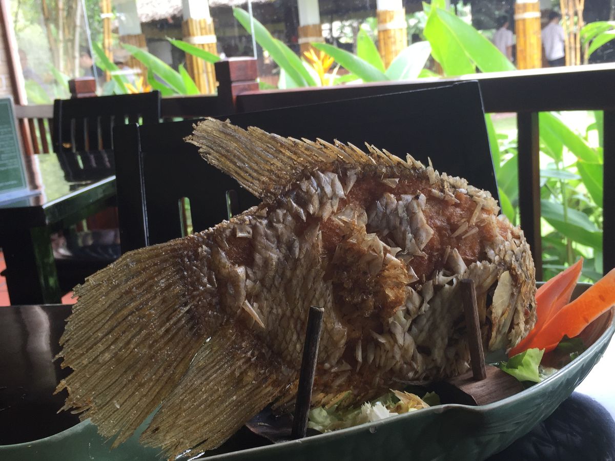 昼食は、象耳魚という魚をいただきましたが、想像していたものより迫力はなかったです。特別美味しいというわけではないですが、ツアー値段を考えれば満足です。