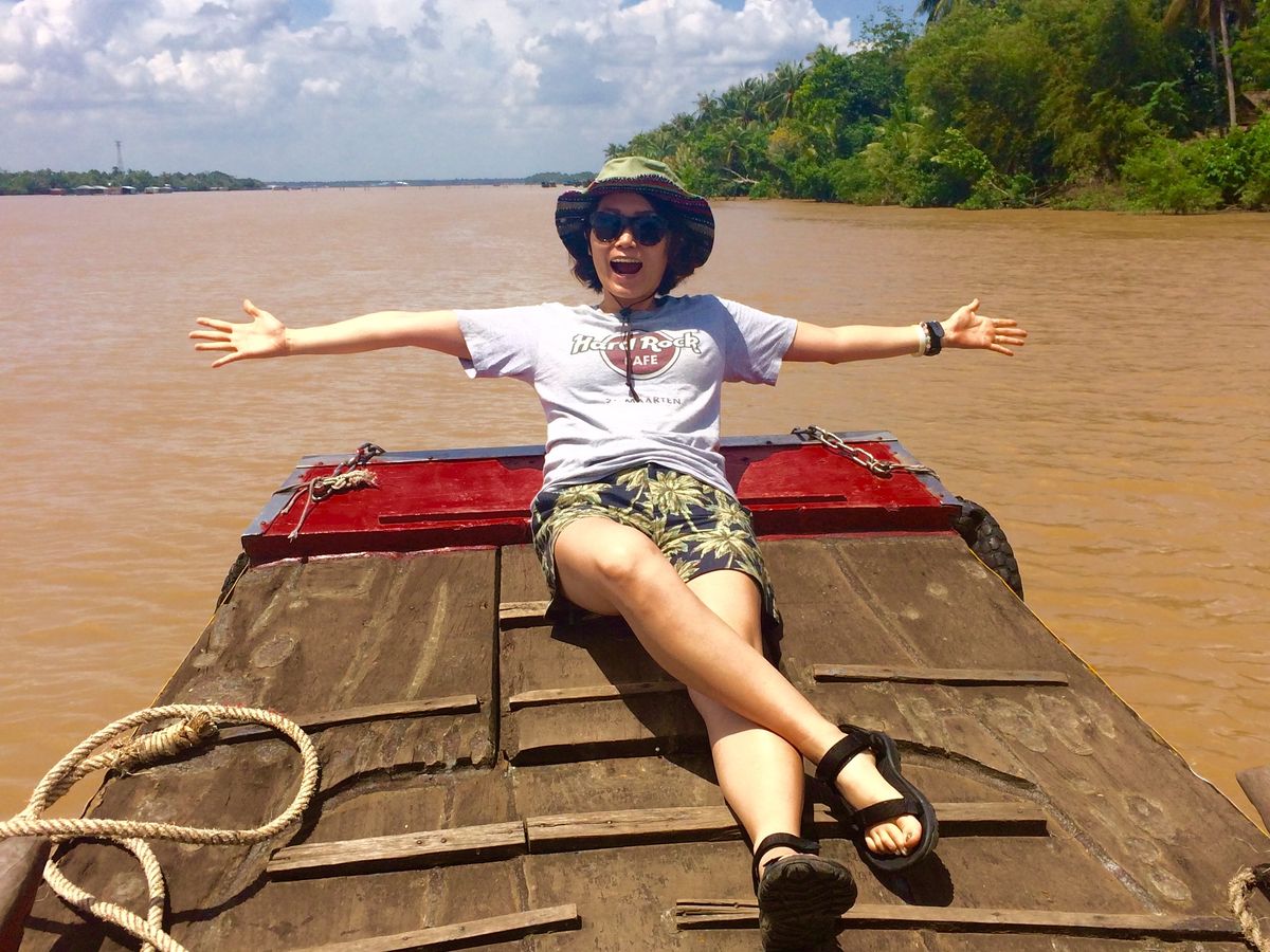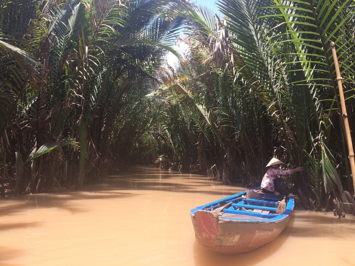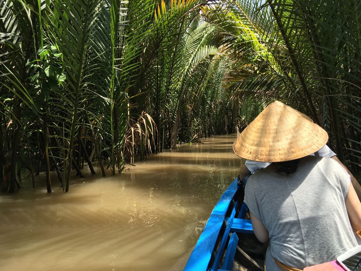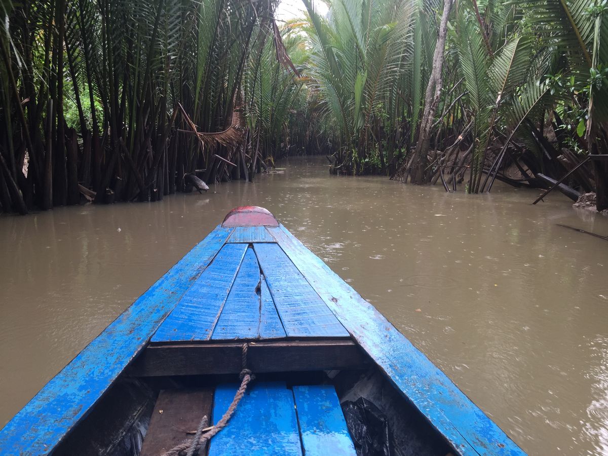 島から島へメコンデルタの雄大な川を小さな船で渡るのがとてもダイナミックで良かった!