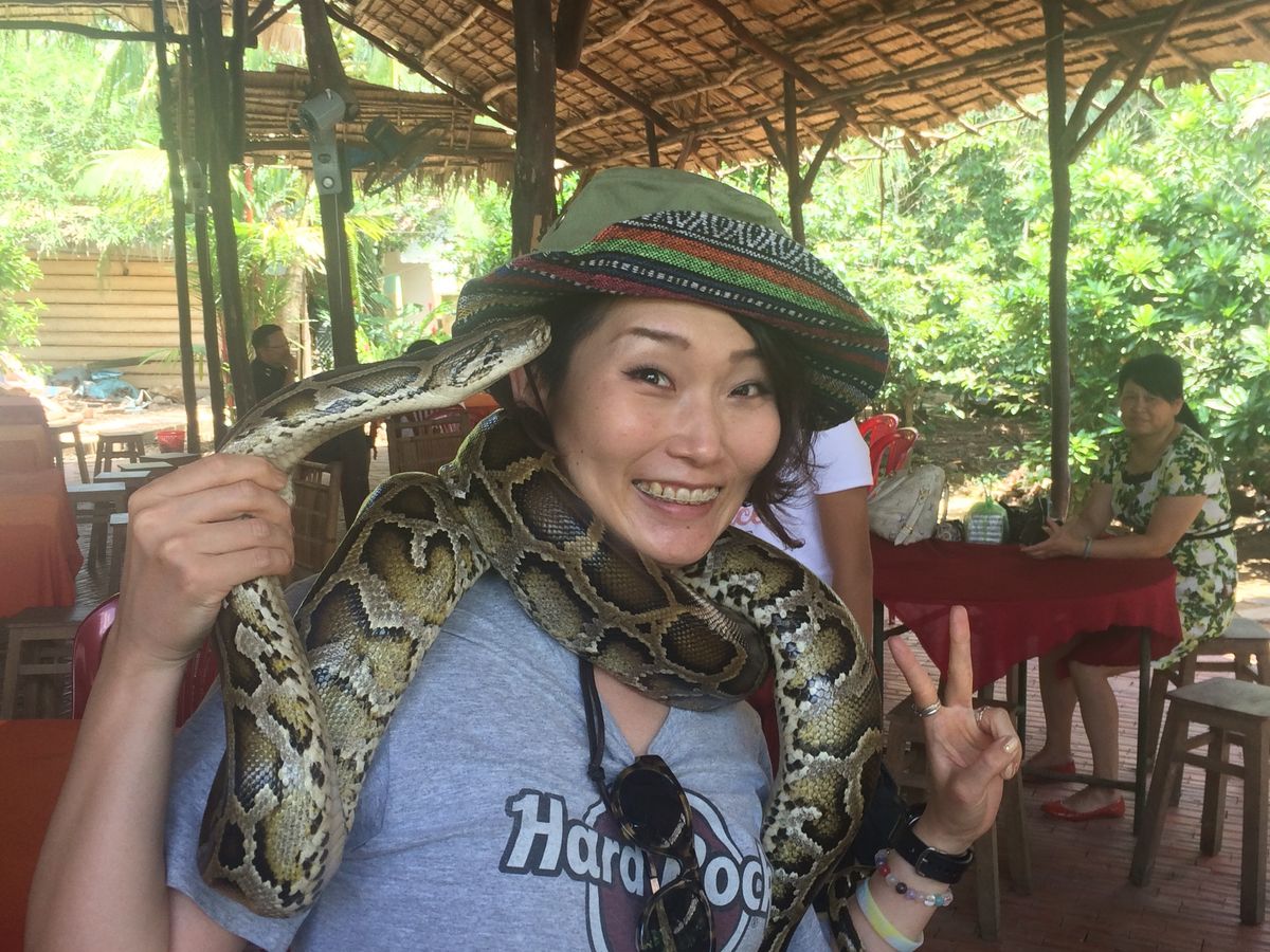普通は大型バスで日本人も西洋人や他の国の人も一緒に行くツアーみたいなんだけど今回は日本人のツアー参加者が私を含め8人いたので他の外国人とは別に日本人だけ専用車でのツアーでした。ガイドさんが「今回はラッキーですよ!」って連呼してました(笑)ツアーとしては途中のドライブイン(?)でハンモック体験したしココナッツキャンディー工場でニシキヘビ首に巻いて記念写真撮ったり細い川を船で渡ったりとても楽しかったです。