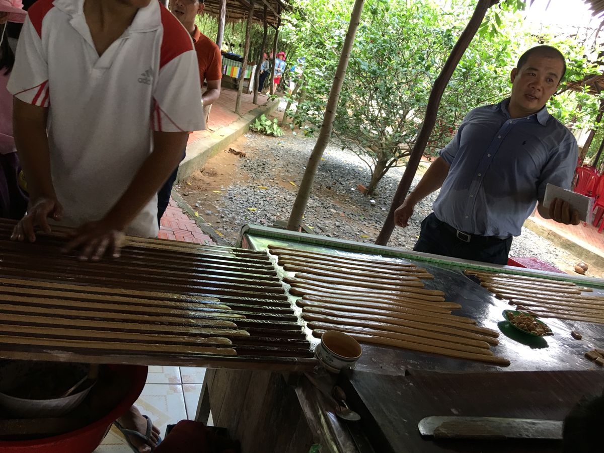 メコンデルタのあるミトー周辺には数多くのココナッツキャンディー工場がございます。