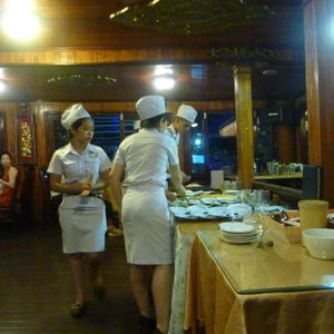 夕刻からの人形劇はハノイのものより劇場が小規模ですが,動きがあって楽しかったです。クルーズもきれいな船でベトナム料理のディナーもおいしかったです。進行方向の左の席が夜景がきれいです。私たちは右でしたが… 席に余裕があり,グループごとに座れます。ただ下船近くになるとバタバタと食器を片づけるのが興醒めでした。