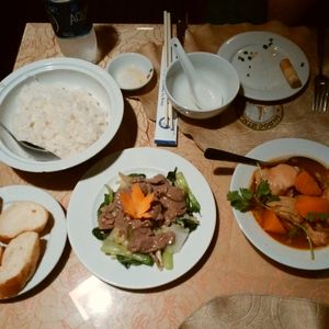 エレファントフィッシュという鱗付きの魚の丸揚げがメインのランチです。風船のような揚げ餅や春巻、ブン麺など食べきれないくらいの品数が出ました。どれも本当に美味しかったです‼︎