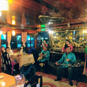 ディナークルーズは生演奏を聴きながらのベトナム料理、鍋も出て結構なボリュームでした。夜景は綺麗でしたよ。