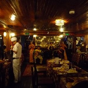 ホーチミンに着いたその夜にツアー参加しました。春節期間中のため、なんと私たち夫婦二人だけのツアーでしたが、クルーズに参加すると他のツアー客も一杯で盛り上がりました。どこに食事に行けば判らなかったのでこのツアーは、助かりました。食事もまあまあおいしくいただきました。