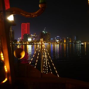 ディナークルーズはすごい前の席だったのでショーが目の前で楽しめました。ごはんはまぁ普通かな。景色は発展途上なのでそれほどきれいではありません。むしろ魚の船が輝きすぎてそっちに目が行きます。