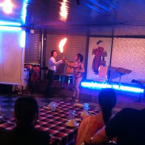 雰囲気は私たちが参加した日は他の日本人もお客さんも少なかったのでゆっくり静かに食べれました。また歌い手さんが日本の歌をやってくれたので、楽しい感じでした。夜景は綺麗でした。食事は普通です、昼に市内観光で疲れていたのでゆっくりするには良いアクティビティだと思います。ファミリーや年配のご夫婦向けのしっとりしたプランだと思います。私たちは参加してよかったと思っています