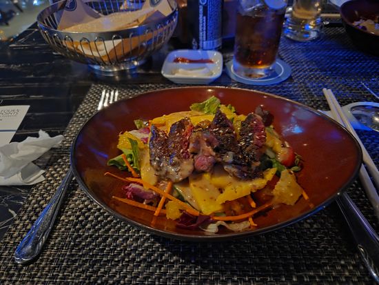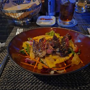 牛肉が乘ったサラダが美味しかったです。ワンプレートの食事も良かったですが50過ぎの2人にはボリューミーでした。