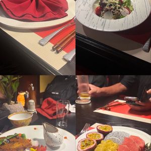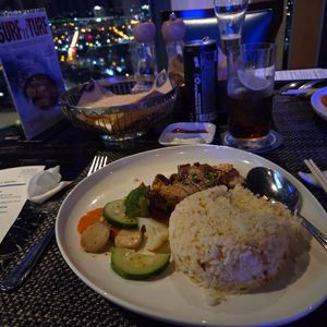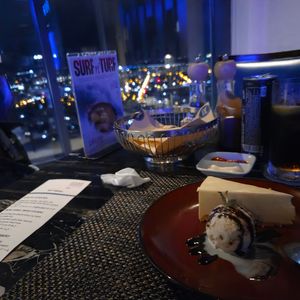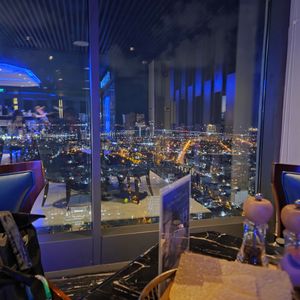 すっきりしたところで最上階のクラブっぽいレストランへ。レストランの眺め(夜景)は綺麗でした。レストランはガラガラでしたが音楽、音響が少々うるさいです。