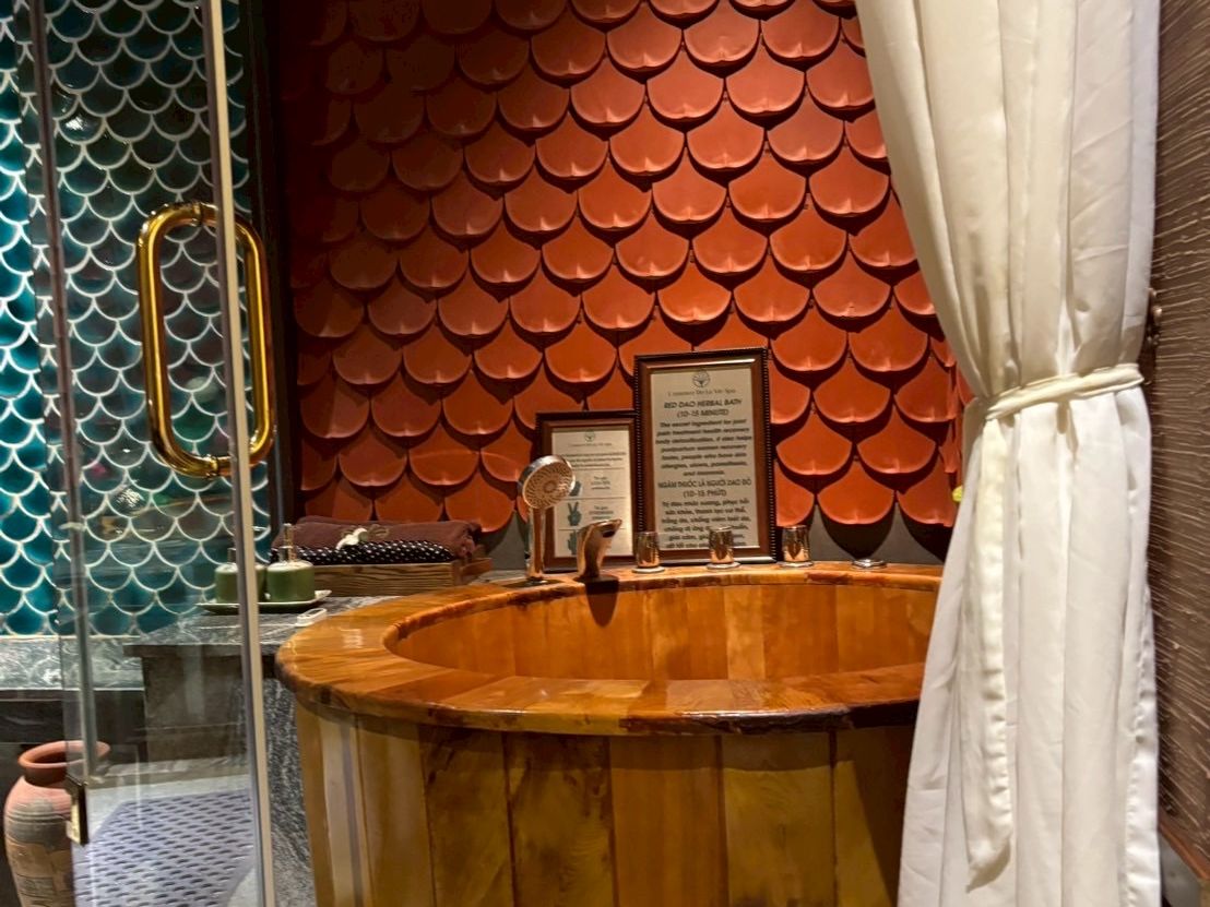 対応いただいた皆さんは、基本的な英語が話せる方のようでした。無料の食事サービスも付けられると言われましたが夕食は済ませていたので予定通りマッサージだけにしました。最初にお茶とドライフルーツのサービスがあり食べながら渡されたアンケート用紙(英語)に必要情報を記入しました。体の絵があって重点的にマッサージしてほしいところを丸で囲み、触って欲しくないところにはバツをつけます。あとは色々、持病やアレルギーがあるかみたいな項目がありました。英語が分からないと少し大変かもしれませんがスマホを使えば問題ないと思います。マッサージ中の要望について、弱くしてほしいときは指を1、強くしてほしいときは2、別のセラピストに変えてほしいときは手をパーにして、と案内を受けました。夫婦で同じ部屋にしてもらい、足を洗ってからマッサージスタート。ホットストーンや棒のようなものを使いながら全身施術を受け気持ちよかったです。オプションツアーのときガイドさんからセラピストは給与が安いのでチップを1時間につき10万ドン目安に渡してほしいと聞いていたので、着替えた後に1人20万ドン渡しました。最後のアンケートにセラピストがチップを求めたか、という質問がありましたのでセラピストから言うのはNGなんだと思います。(こちらが渡しただけなのでNOで回答)
