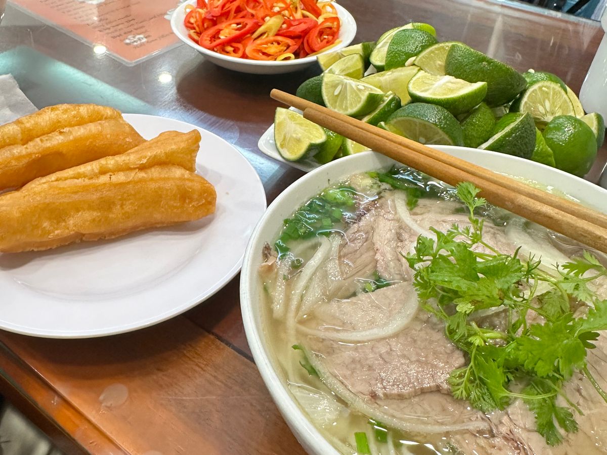 昼食のフォーも人気店で美味しかったです。揚げ麩も別料金で追加したいといったら、ガイドさんがオーダーしてくれました。