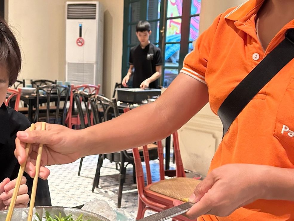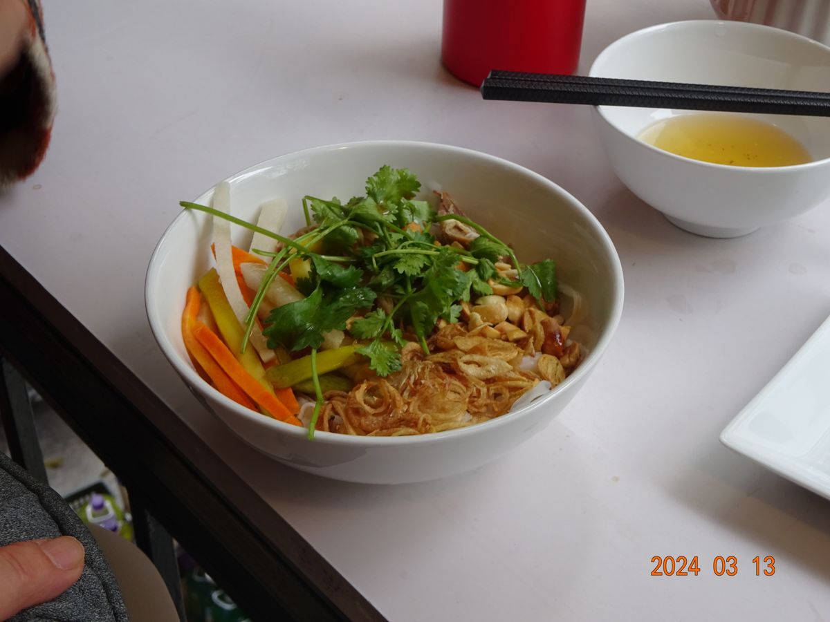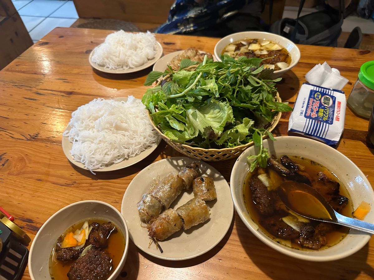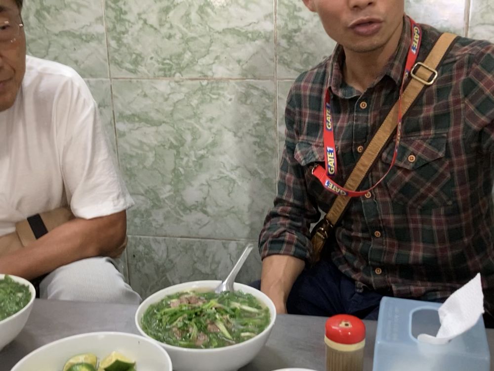 残念なのは、食事の場所はもう少し清潔感のある方が良いと思います。これがハノイなのかもしれませんが少し引いてしまいました。ブンの味は私には丁度良い味で美味しく食べました、ハノイは生野菜をあまり食べないと聞いていましたが、ブンに入れる生野菜が沢山出ましたのでびっくりです、しかし日本の野菜とは味が違いほとんど残してしまいました。